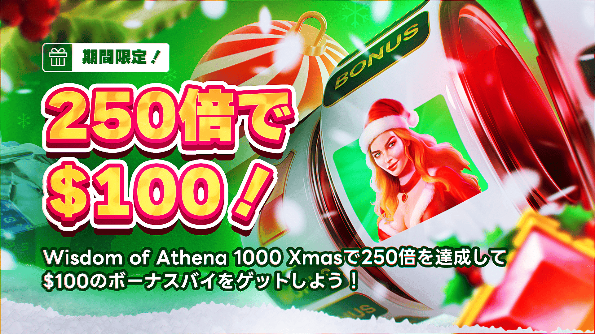 当選者にはWisdom of Athena 1000 Xmas で使える$100のボーナスバイが付与されます。