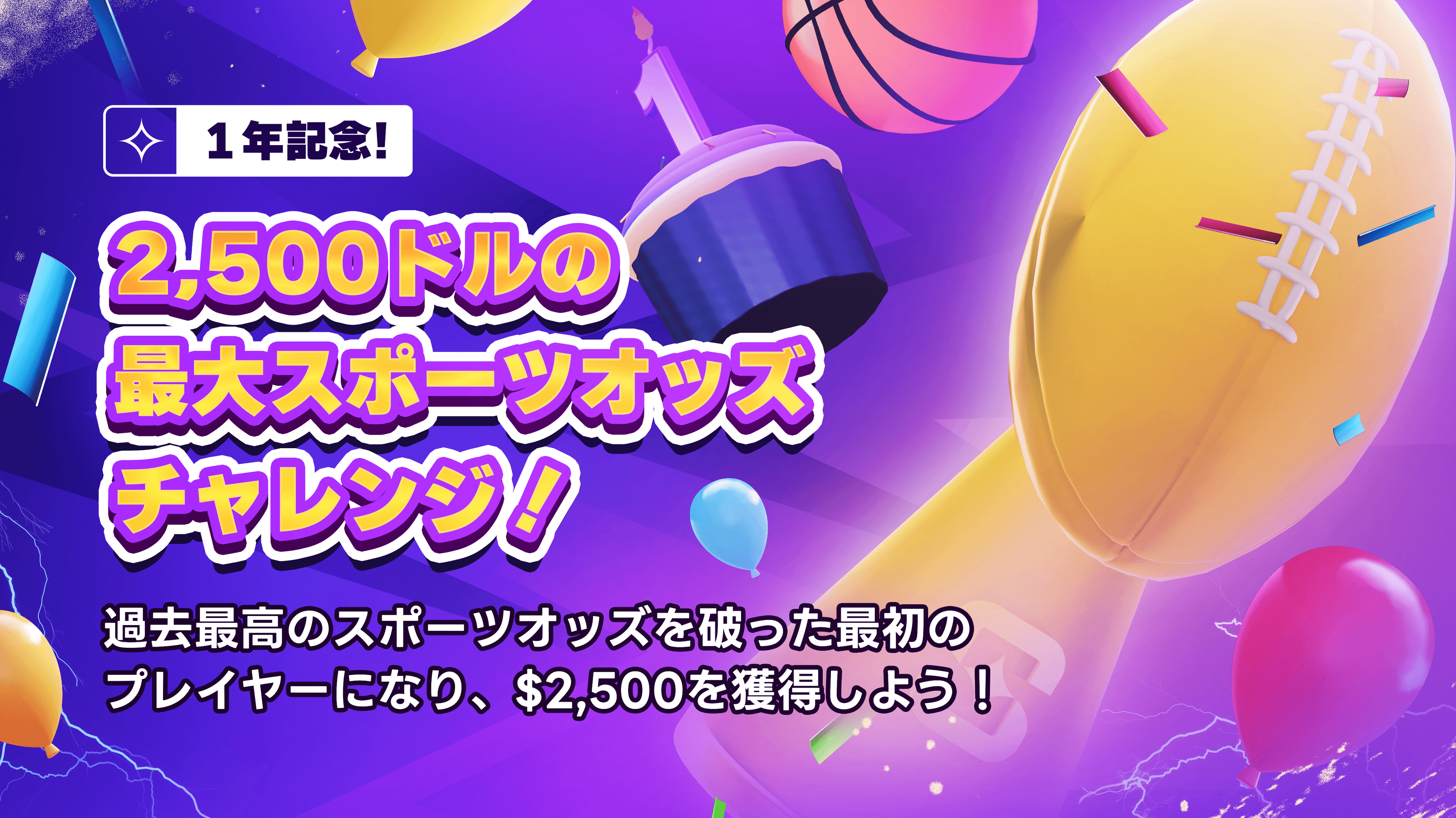 過去最高のスポーツオッズ(933.5)を上回った最初のプレイヤーになれば、即座に$2,500を獲得できます!
